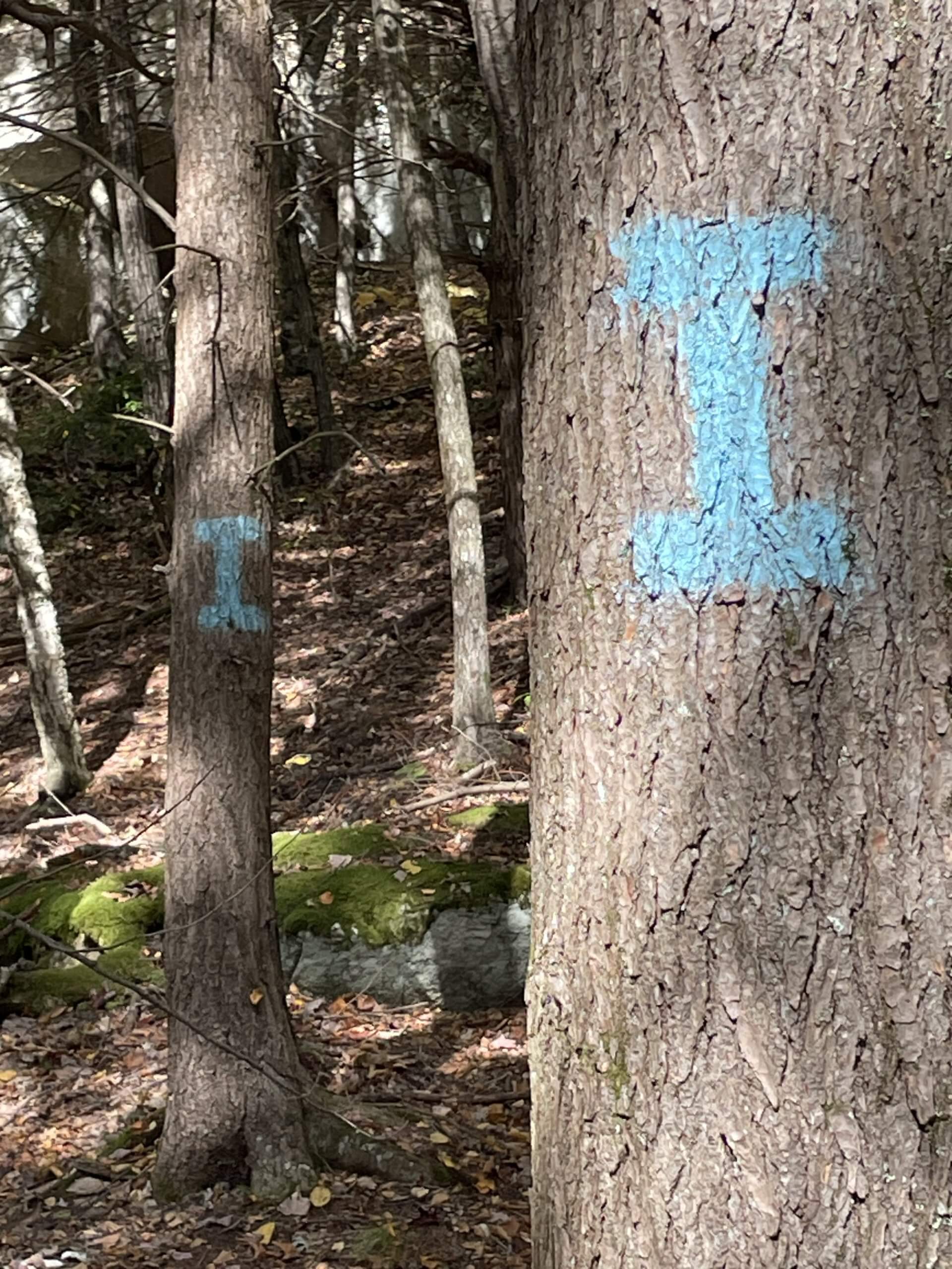 Proceed north on Flagg Road, away from the pond. In about 0.1 miles, go left (west) at the trailhead. Follow the light blue rectangular blazed trail through the many stands of mountain laurel, keeping the pond and then the wetland on your left. At about 0.8 miles, you will see two trees ahead with the letter “I” painted on them; these trees point upward to the “Indian Cave”. Climb up the short rise until you reach the cave. (Watch out for porcupine quills!) With the cave on your left, go right and up the short but steep embankment, keeping the stone ledge on your left. At the end of the ledge, turn around and follow the yellow circular blazed trail as it meanders mostly north through the woods. At about 1.2 miles, proceed right (east) onto the old dirt country road. At about 1.8 miles, proceed right (south) onto Flagg Road and back to where you parked.